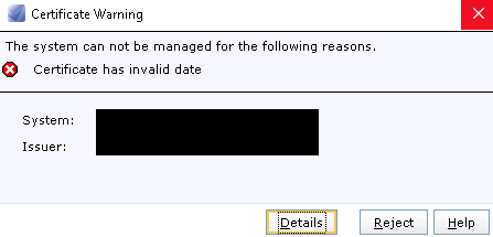 EMC 점검 차, Unishpere 접속하니, 아래와 같이 나오는 것을 확인하였습니다. 해결 방안은 Dell 홈페이지에서 확인이 가능합니다. VNX: Error: Certificate has invalid date. (User Correctable) | Dell 대한민국 VNX: Error: Certificate has invalid date. (User Correctable) | Dell 대한민국 증상 When trying to connect to the VNX via Unisphere UI the following error appears: Certificate Warning The system can not be managed for the following reasons. Certificate h..