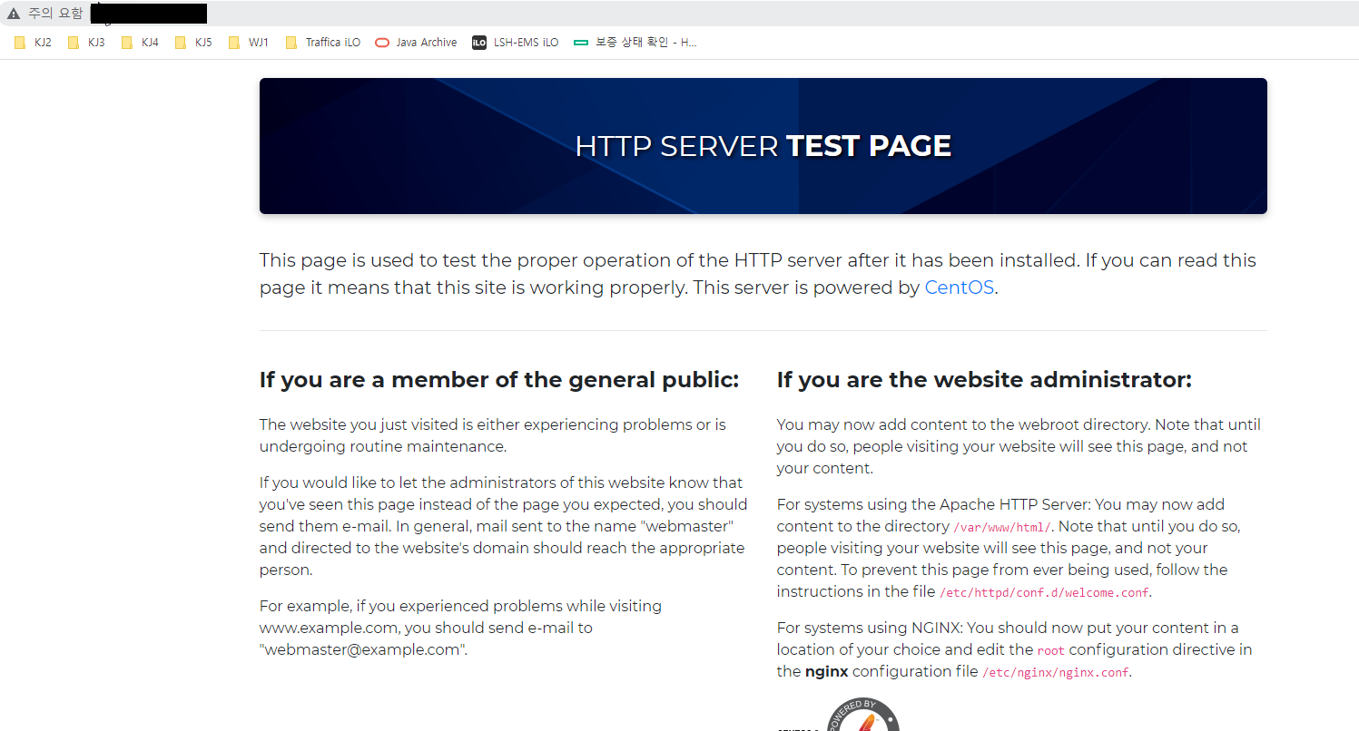 inet 위치의 ip 확인 후, 웹에서 접속해 보면 정상적으로 설치 된 것을 확인 할 수 있습니다.