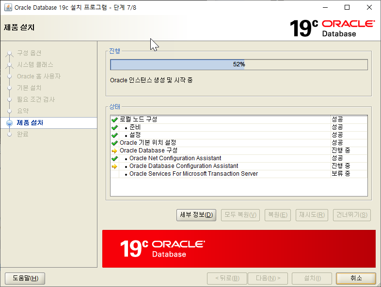설치 완료 되었다는 화면이 표시되면, cmd 창에서 sqlplus를 입력하여, 접속이 원활히 되는지를 확인한다.