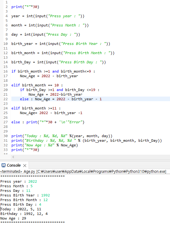 else : Now_Age = 2022 - birth_year - 1