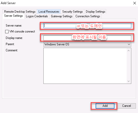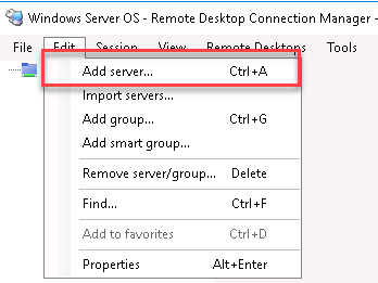 생성 후, Edit -> Add Server로 RD 할 서버를 지정합니다.