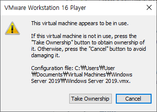 VM Ware에서 windows 서버를 실행하고자 하는데, 아래와 같이 문제가 발생했습니다.